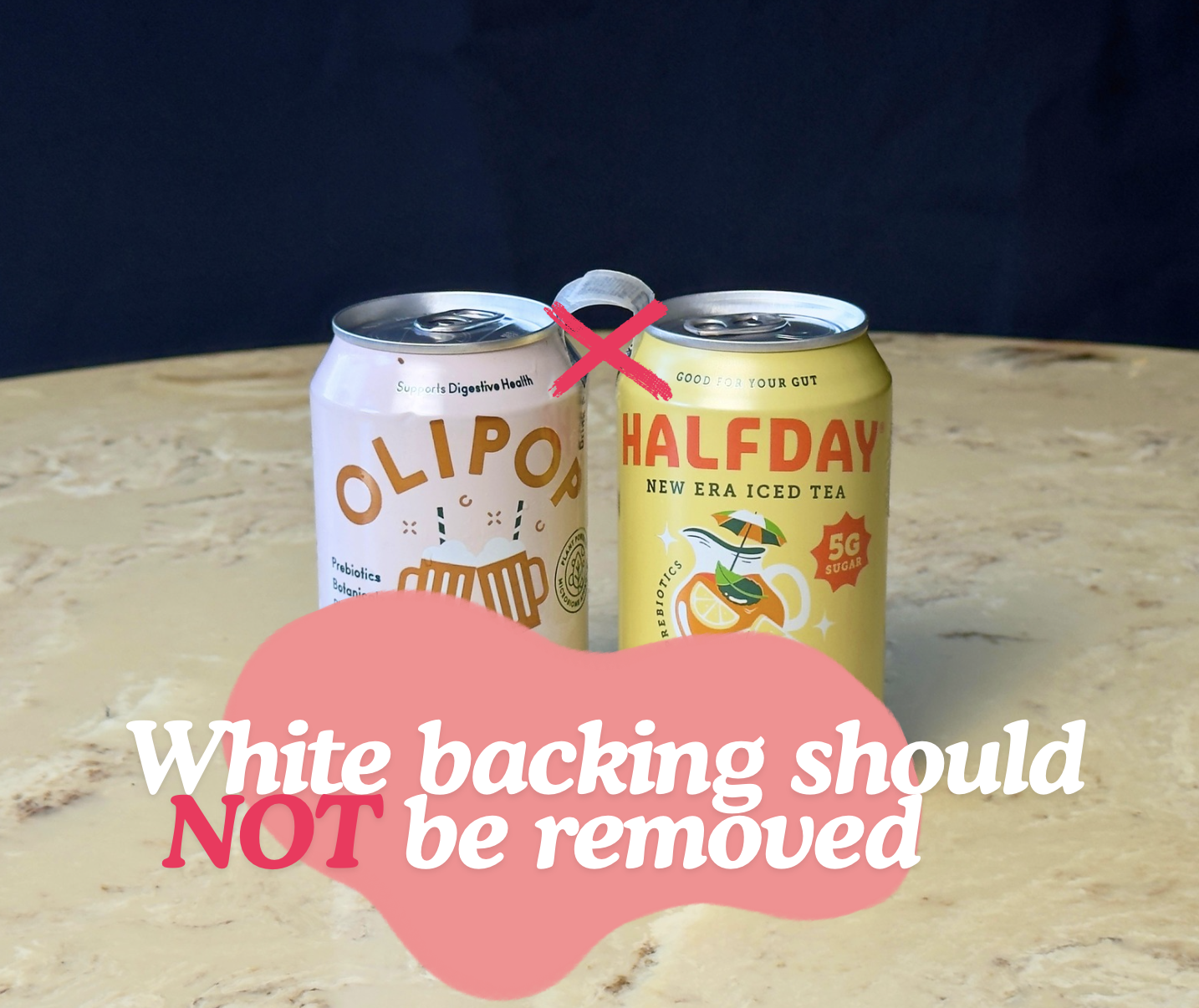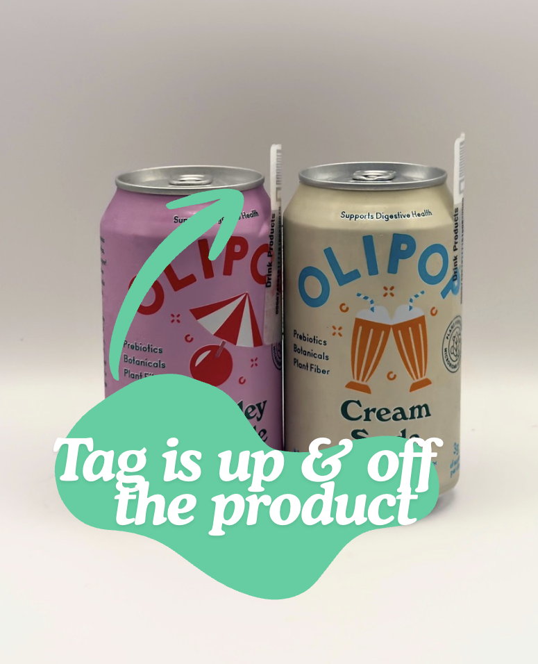 Please note that for all drinks, apply the tag so the adhesive is vertical and is covering as much area as possible on the product. This improves adhesive strength. You will even be able to hold up the product by the folded-up section!