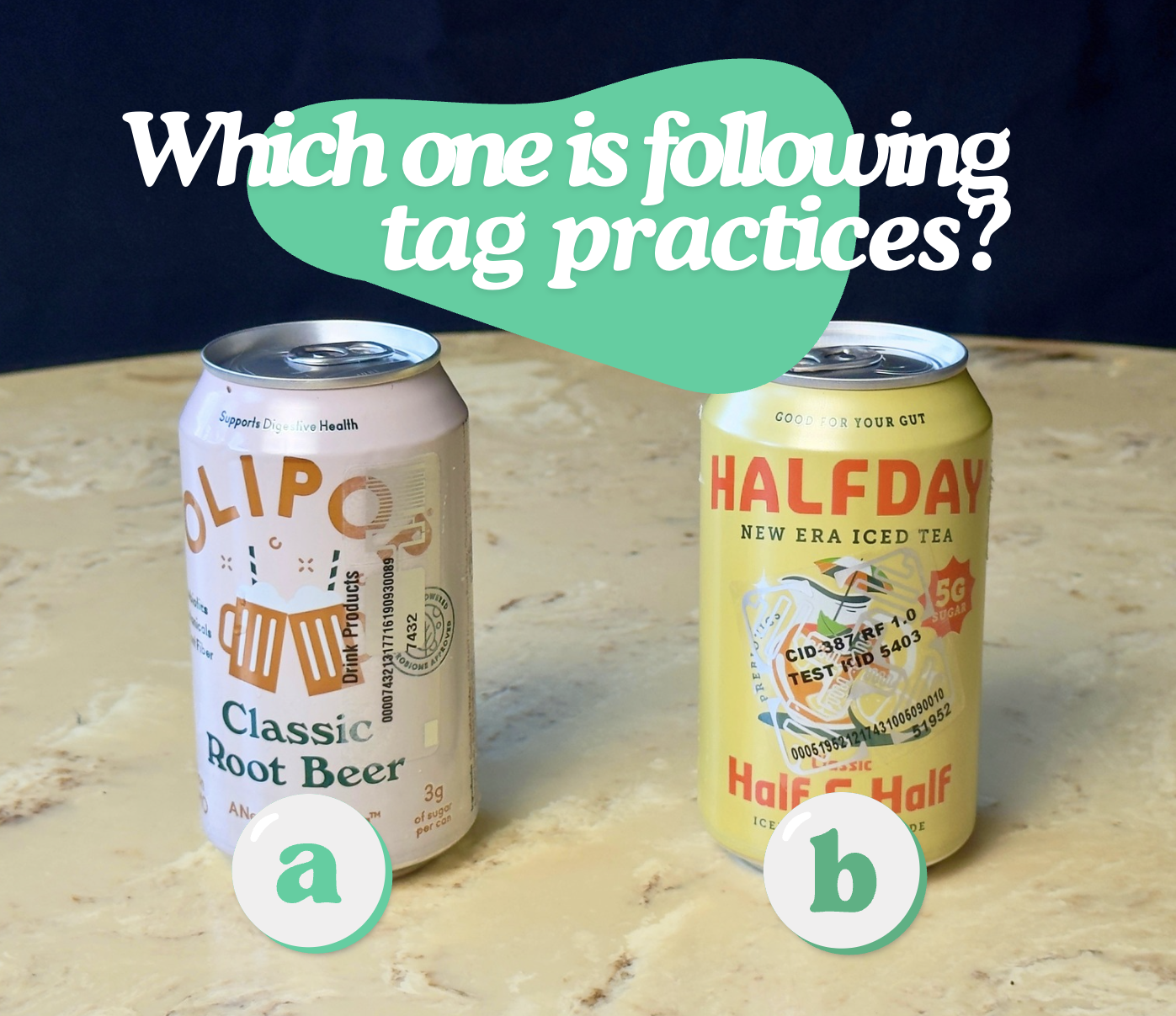 Every well-rounded product set includes drinks! Because drinks are liquid, they must be tagged properly. Drinks should be tagged with a Drink Flag Tag. You will see the Drink Tag and Metal-Safe tag in the dashboard when ordering tags. These are the same tag type. We call it the Flag Tag.