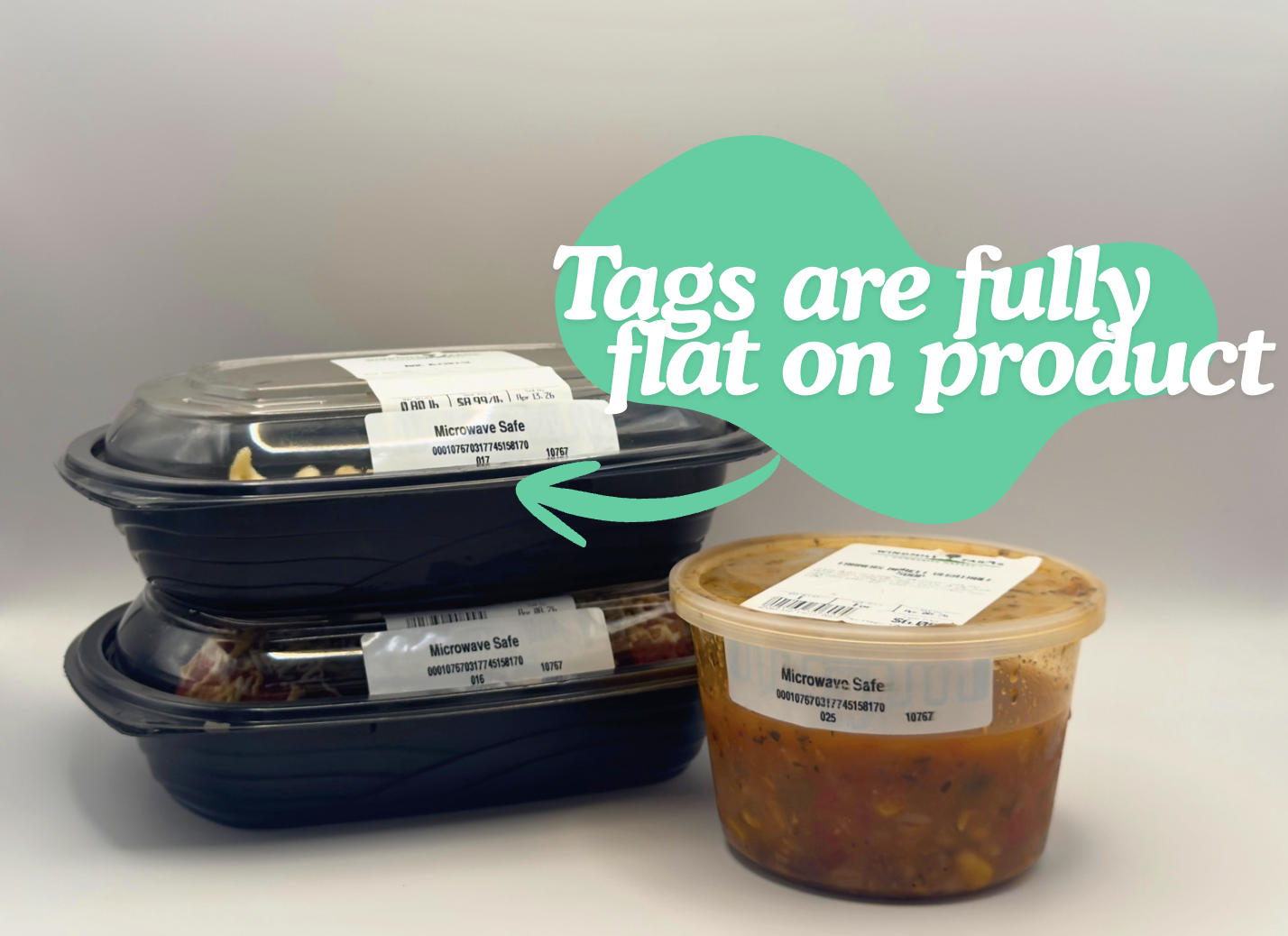 For best results and safe use, press the tag firmly and evenly onto the container so the adhesive is fully in contact with the surface. Any lifted edges or air pockets can affect both readability and microwave safety.