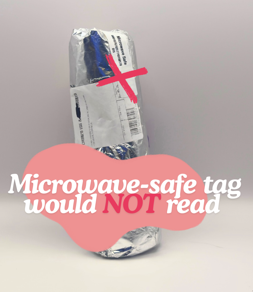Some burritos are not frozen and are wrapped in aluminum foil. A microwave-safe tag would not be appropriate to be used for aluminum wrapped burritos. You would not microwave the burrito in aluminum foil and the microwave-safe tag would not read. The aluminum would block the RFID tag from reading!